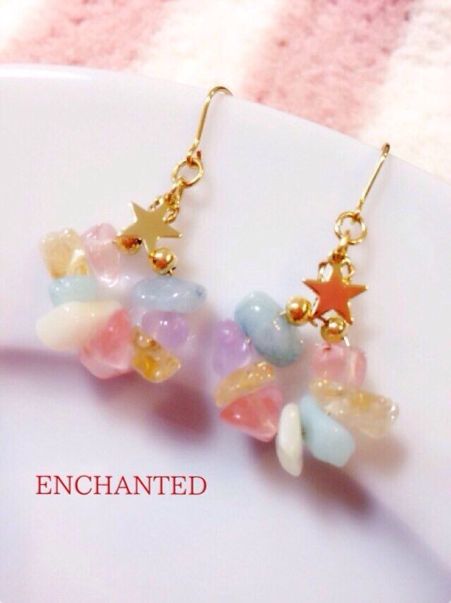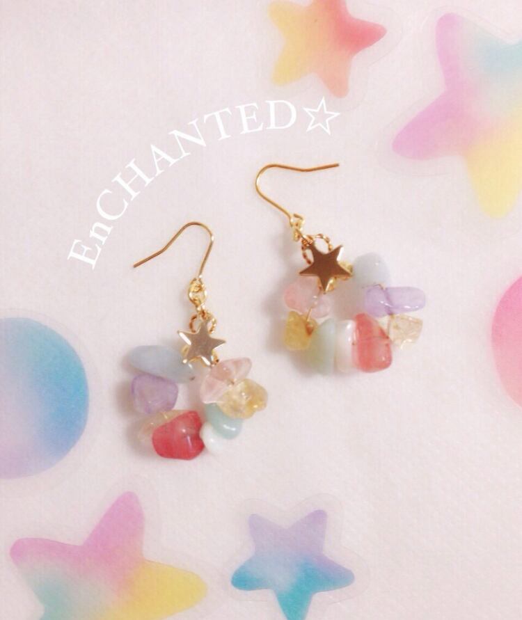 カラフルでかわいい天然のさざれ石を集めて、ピアス・イヤリングを、作りました☆